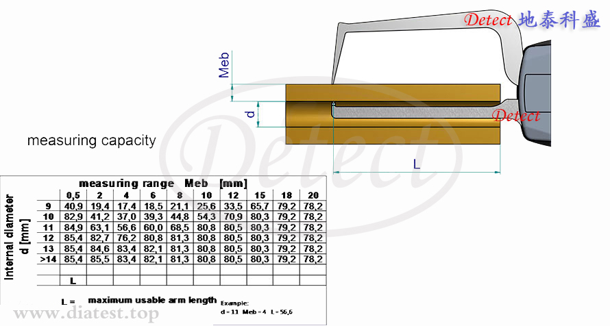 KROEPLIN645E-107数显式管壁厚度测量卡规,测量范围为0.00mm-20.00mm,最大测量深度:80mm;测点形式为可动测头为楔形R0.4,固定测头为球形Φ1.5,用途为:外径测量