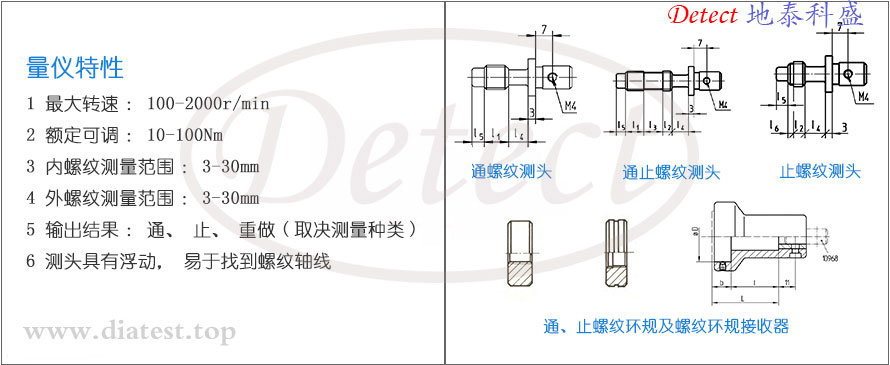 自动测量,测头为专用螺纹规,扭矩可控,转速可控,测头浮动,检查螺纹时同时清洁螺纹,测量结果可记录。