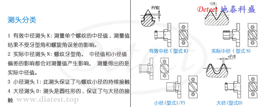 比较法测量,通过更换测头可测量丝杠的内径值。精度高且耐磨损。用于快速大批量检测,调整丝杠加工设备。